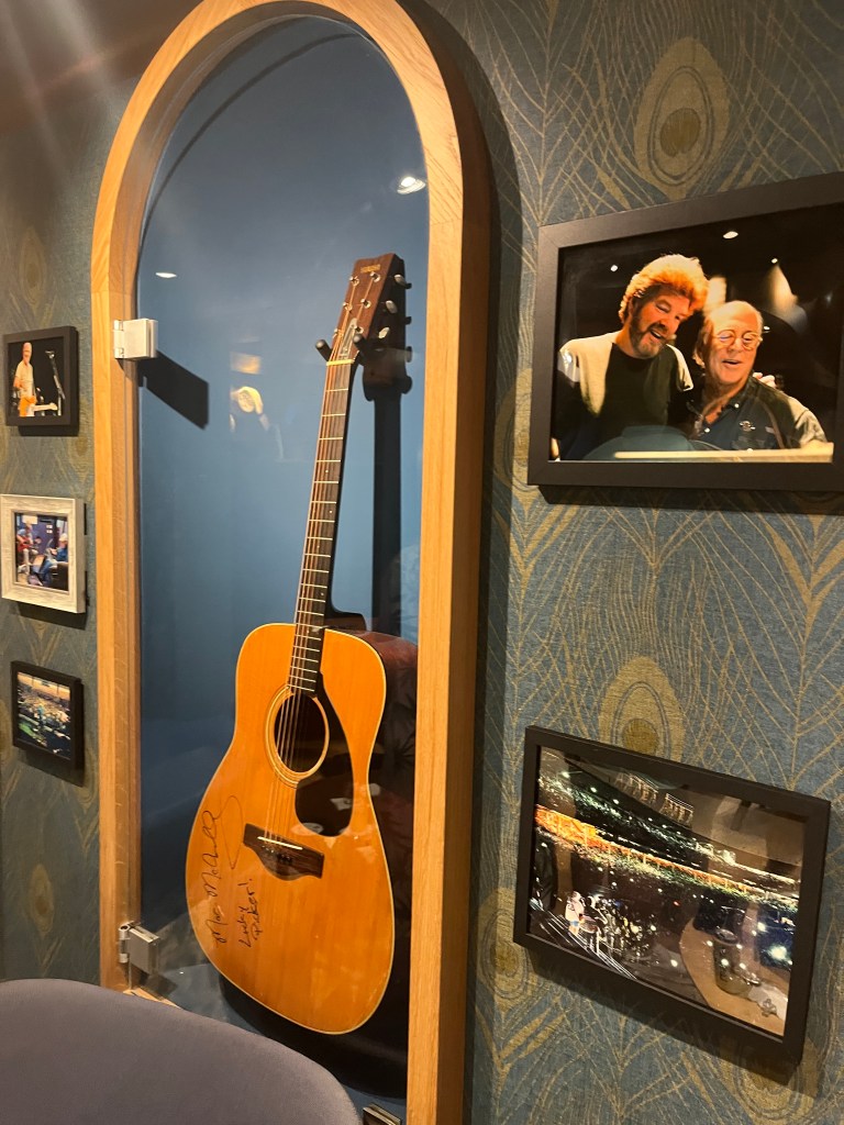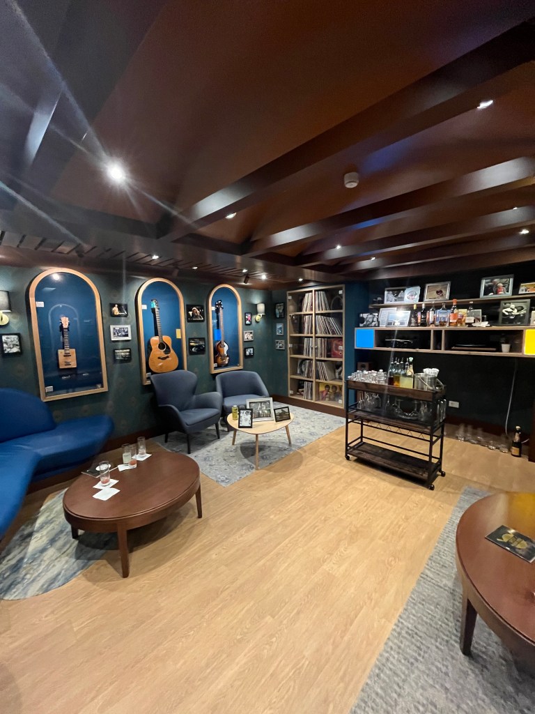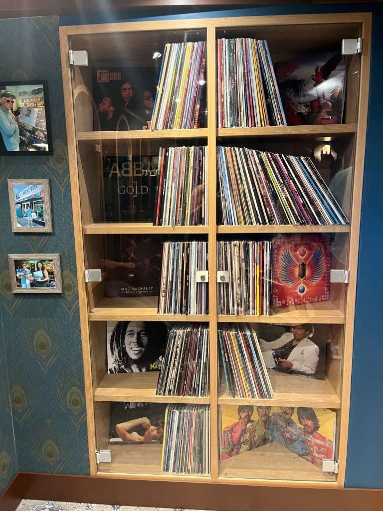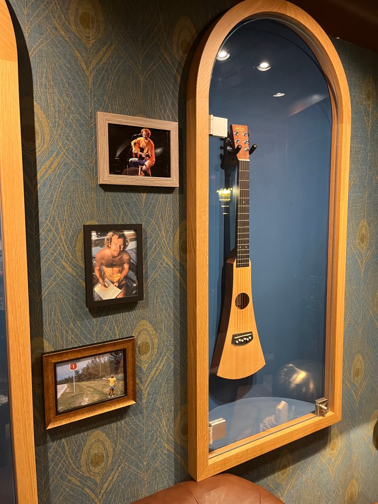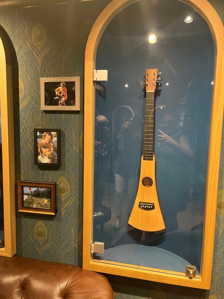 If you’re a relative newcomer to true Parrothead status, like me, or if you’ve been a fan of Jimmy’s music for years, the “Quietly Making Noise” experience is a great option for your Islander cruise. You’ll frequently hear this being referred to as the “speakeasy” experience, and it’s true that it’s not really advertised. You have to make a reservation at Guest Services, and it’s not promoted in the onboard materials. The door to the room where the experience happens is unmarked and you wouldn’t even know it was there until your guide for the experience took you inside it.