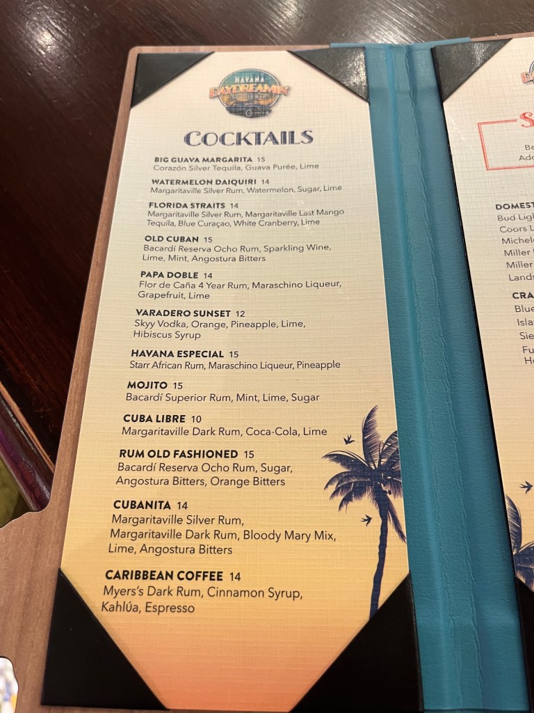 Something that might surprise you is that the Islander is a great choice for craft cocktail fans. You might think that this ship is only about margaritas and Jimmy’s Landshark beer (which is a surprisingly tasty lager, btw), but you’ll find a variety of drink menus at different bars throughout the ship. That’s a nice change from legacy cruise lines like Royal Caribbean and Carnival, which often have the same menus at each bar. I’ll put some pictures of the cocktail menus at the end of this post.