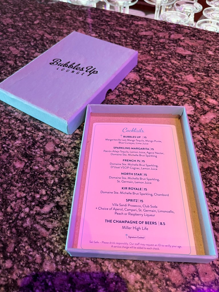 It won’t surprise you that the Islander is a great option for Jimmy Buffett fans. The theming is impeccable, from the names of venues (and even decks!) to the graphics throughout the ship. The Islander’s “speakeasy” experience, Quietly Making Noise, was so awesome for this Buffett fan that it deserves its own blog post. By my estimate, about 50-60% of the music played on the ship was Jimmy’s, including some of the less popular b-sides and unreleased songs.