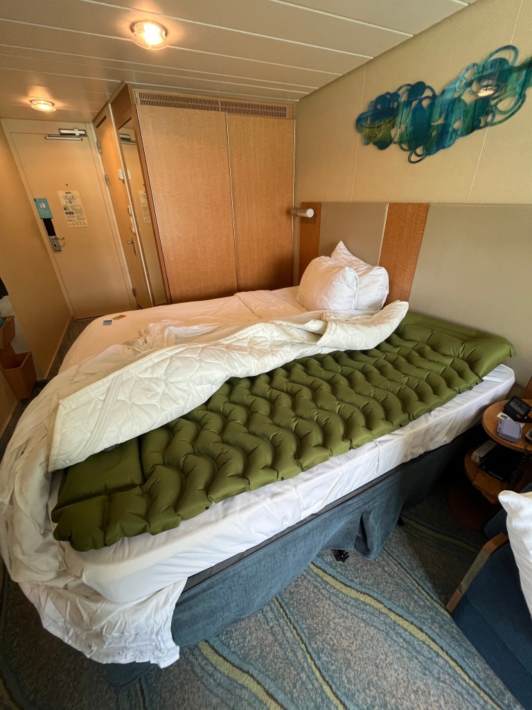 When I packed in May 2025 for nearly a month of cruising, I decided that I was going to bring the pad with me on this trip and try to save myself the pain of sleeping on hard beds for all those nights. When I arrived at my first cruise ship, Royal Caribbean’s Allure of the Seas, I was glad I had done so — the bed was pretty hard.